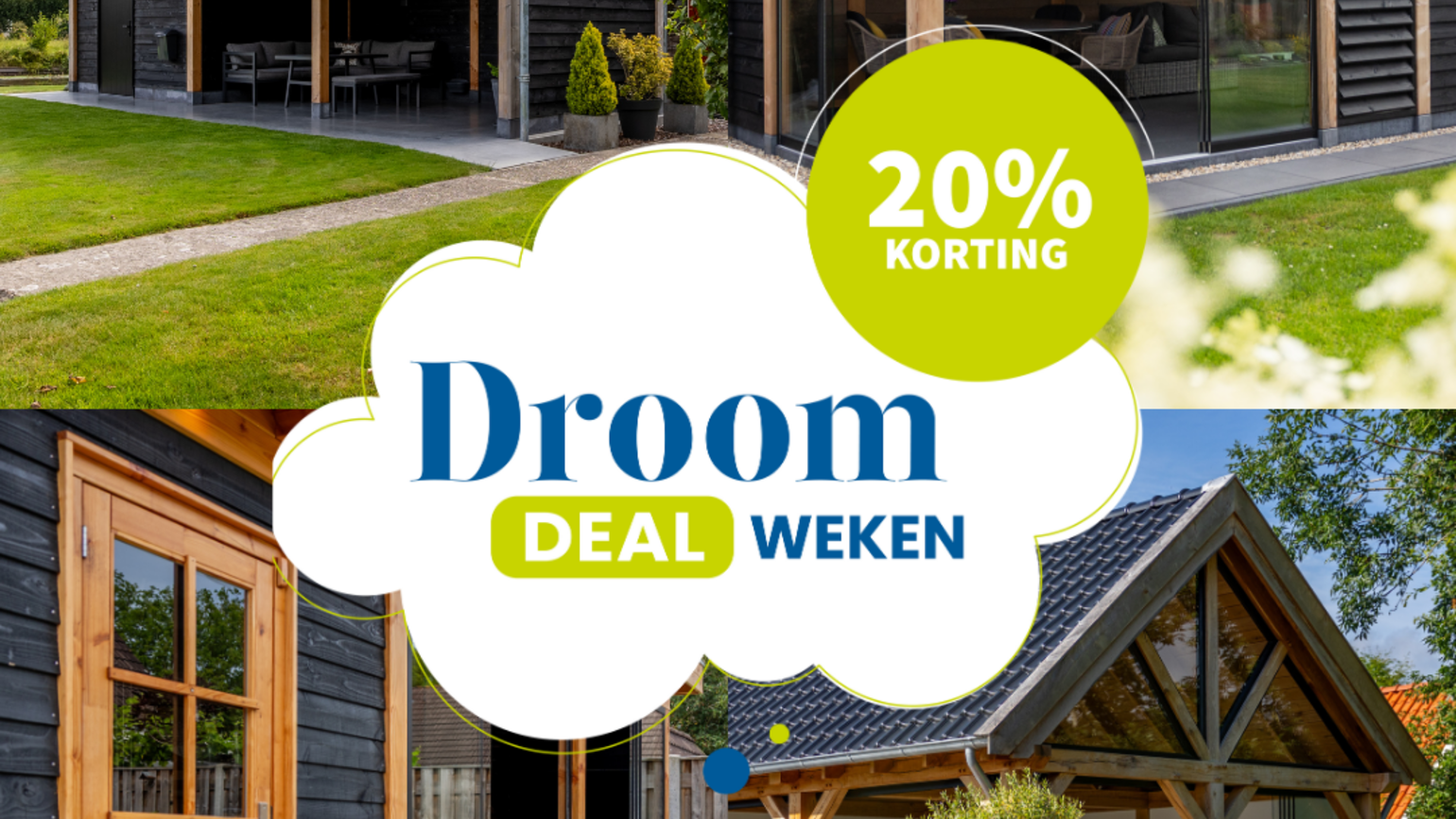 Droom je van een overkapping, kapschuur, blokhut, tuinhuis of een compleet buitenverblijf? Tijdens de DroomDealWeken 20 % korting op alle Trendhout buitenverblijven! Actie loopt tot 1 november 2025 dus grijp nu je kans en maak snel een afspraak of kom langs of maak uw eigen ontwerp in de Trendhout 3D app.